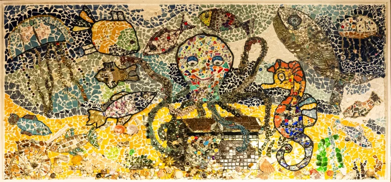 In April 2022 an 8 ft x 4 ft MDF Board was bought and sealed by the Facilitator, Maureen Purcell, STAG ORGANISER. Michael Conroy, carpenter, then made a frame for it. It was situated in the Infant School, Ss. Peter and Paul’s Primary School Kickham St. Clonmel. A call went out to members of the Clonmel and District Community for older people to participate in the Mosaic. This was the result!