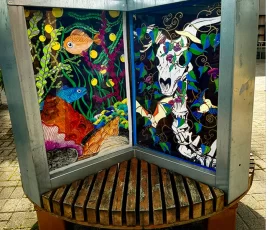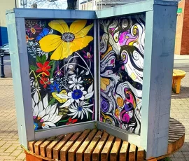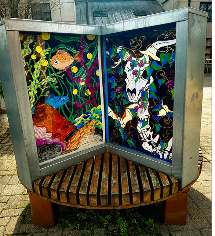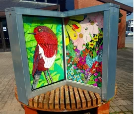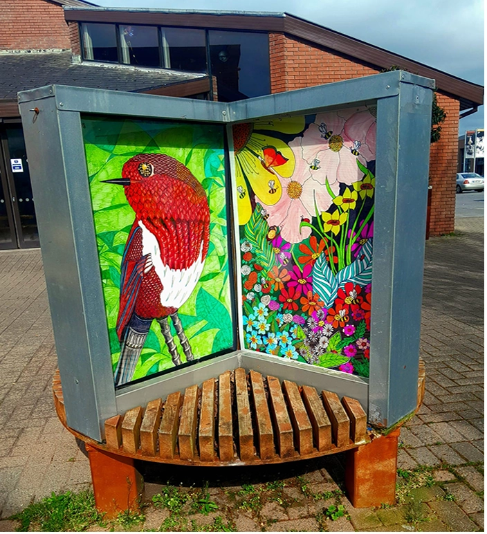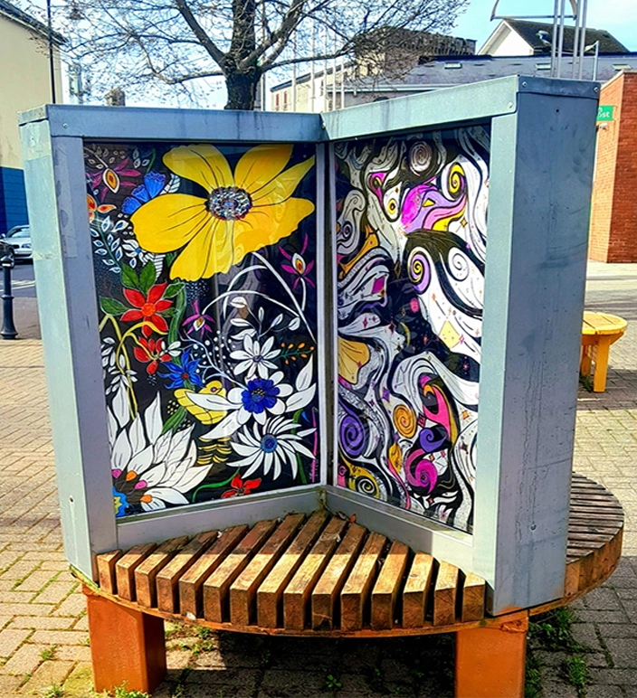 The remaining panels, feature local scenes and floral panels, some of these are currently surrounding the building site of the new St. Anthony’s Unit in Glenconnor by the STAG Work Team of Bartley, Tony, Frances, Dolores, Maryna, Nataliaa, Noreen, Winnie and Maureen. We were invited by St. Anthony’s Unit to paint scenes etc. on the new hoarding there.